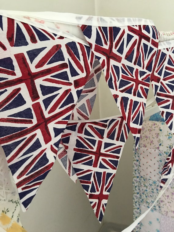 Union Jack Cotton Fabric Bunting Banner Flag Wedding Party Flag Vintage Event Royal Wedding Red White And Blue Bunting