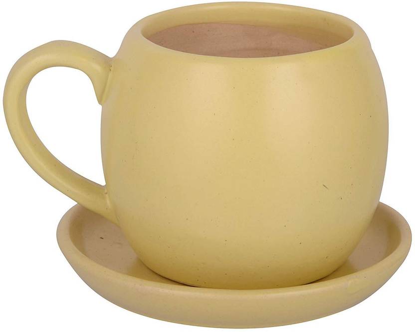 Lasaki Cup Saucer Small Light Yellow Ceramic Planter Plant